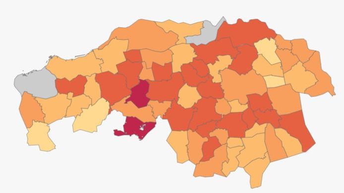 Vandaag zijn er drie nieuwe gevallen bekendgemaakt. De rode lijn stijgt steeds harder. Bekijk hier waar de laatste besmettingen zijn.